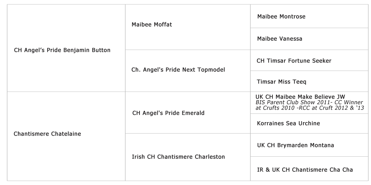 5 x 1° ECC – 2 x CAC – 2 x CACIB – 1 x R. CAC – 1 x Miglior giovane – 1 x BOS – 1 x BOB